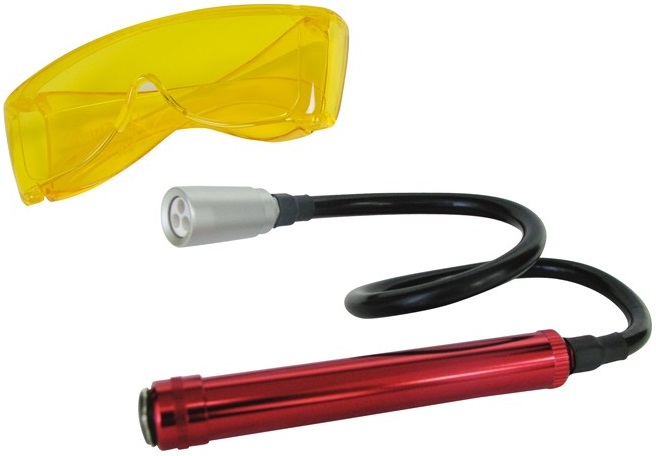 Состоит из УФ фонаря и очков