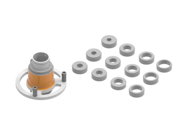 Приобрести Набор для работы с обычными осями. Состоит из ступицы с набором (12 шт) переходных колец от компании Comec (Италия) из раздела Аксессуары
