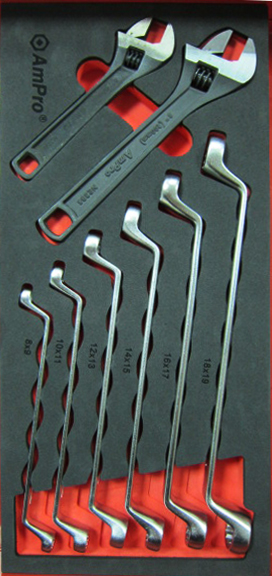 Приобрести T40697 Набор накидных ключей изогнутых и разводные ключи, 8пр в мягком ложементе от компании AmPro (Тайвань) из раздела Ложементы мягкие (VA серия) по цене 3 963 рублей.