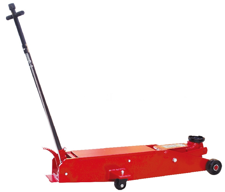 Домкрат гидравлический подкатной. Имеет удлиненную раму (шасси).