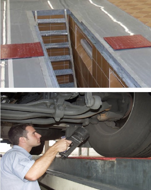 Две подвижные площадки (с гидроприводом) имитируют все возможные нагрузки, испытываемые подвеской и рулевым управлением в процессе движения автомобиля.