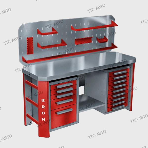 Верстак слесарный двухтумбовый Kronvuz Гефест-ВС-509-ЭП с экраном.
