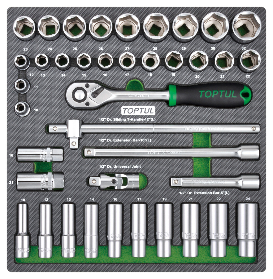 Набор головок и аксессуаров 1/2", 39 пр. в мягком ложементе TOPTUL GEC3901 купить в Тюмени и других городах России