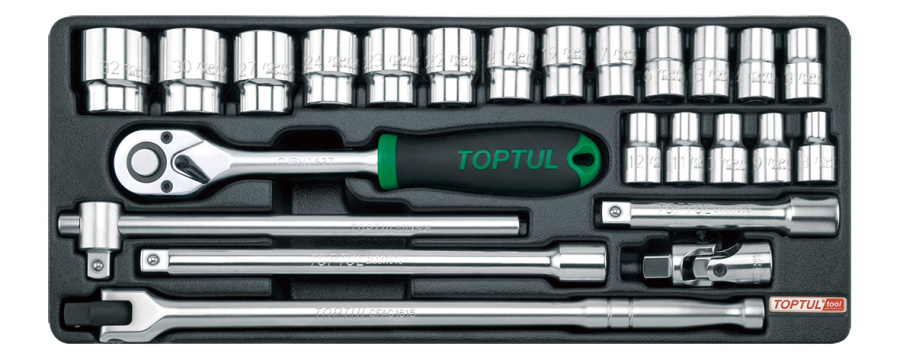 Набор головок и аксессуаров 1/2" 6-32 мм, 24 предмета, в ложементе TOPTUL GCAT2402 купить в Тюмени и других городах России