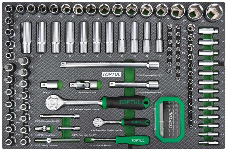 Набор головок и аксессуаров 1/4" и 1/2" 6-гр.,133 пр. в мягком ложементе TOPTUL GEDD348 купить в Тюмени и других городах России