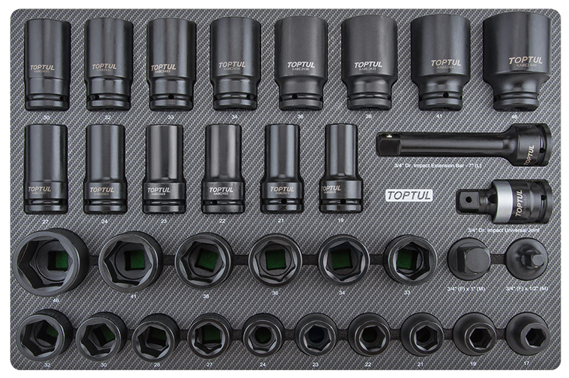 Набор ударных головок 3/4'' 17-46 мм короткие и длинные, 34 пр. в мягком ложементе (D) TOPTUL купить в Тюмени и других городах России