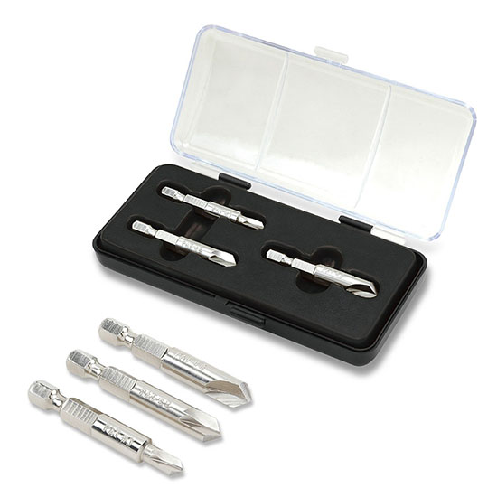 Специальные биты из закаленной стали для надежного прикуса на поврежденных крепежных элементах.