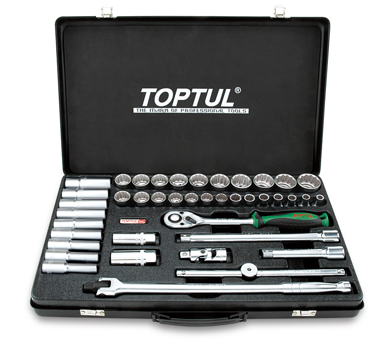 Набор головок и аксессуаров 1/2" 12-гранных 8-32 мм, 41 предмет в метал. кейсе TOPTUL GCAD4103 купить в Тюмени и других городах России