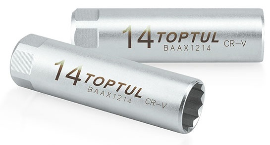 Головка свечная 12-гранная 3/8" 14 мм L=63 мм с пружинным фиксатором TOPTUL BAAX1214 купить в Тюмени и других городах России