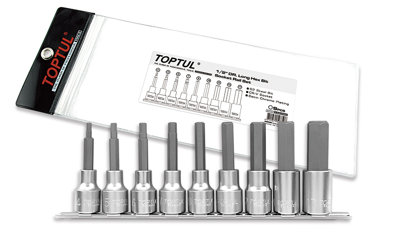 Набор торцевых головок 1/2" с шестигранными вставками 4-17 мм L=80 мм на планке 9 предметов TOPTUL купить в Тюмени и других городах России