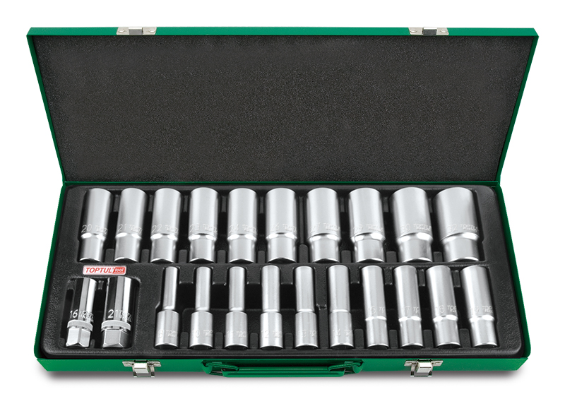 Набор головок удлиненных 1/2" 6-гранных 8-32 мм, 22 предмета в метал. ящике TOPTUL купить в Тюмени и других городах России