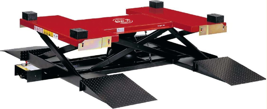 Низкопрофильный пневматический подъемник для поста шиномонтажа TECO 16 версия TSR (2-х ступенчатые заездные трапы длиной 1070мм),