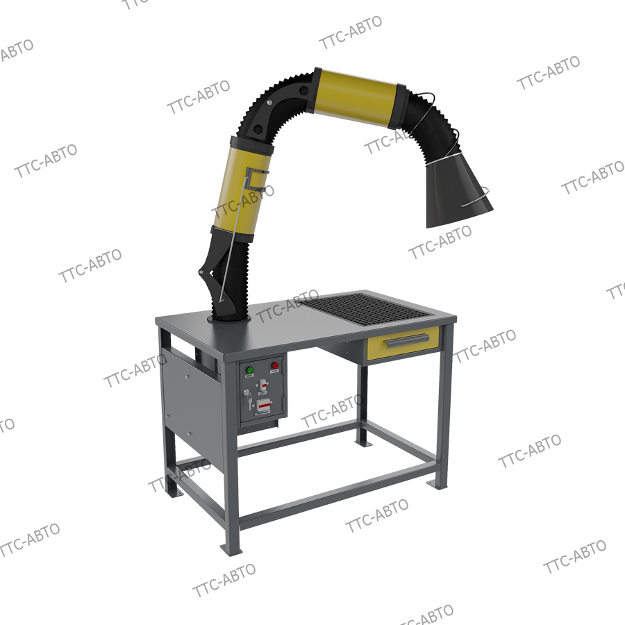 Рабочее место оснащается регулируемой вытяжной трубой, которая позволяет убирать вредные газы и пыль.